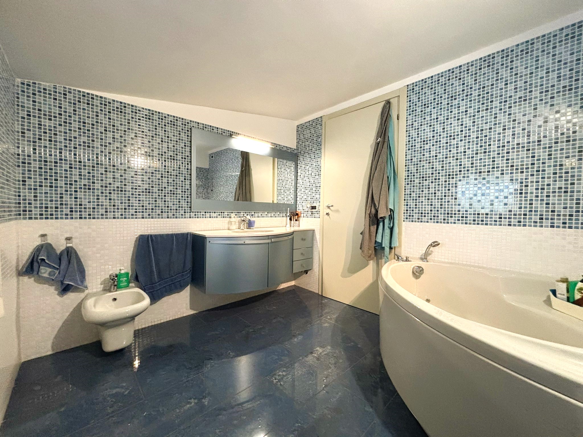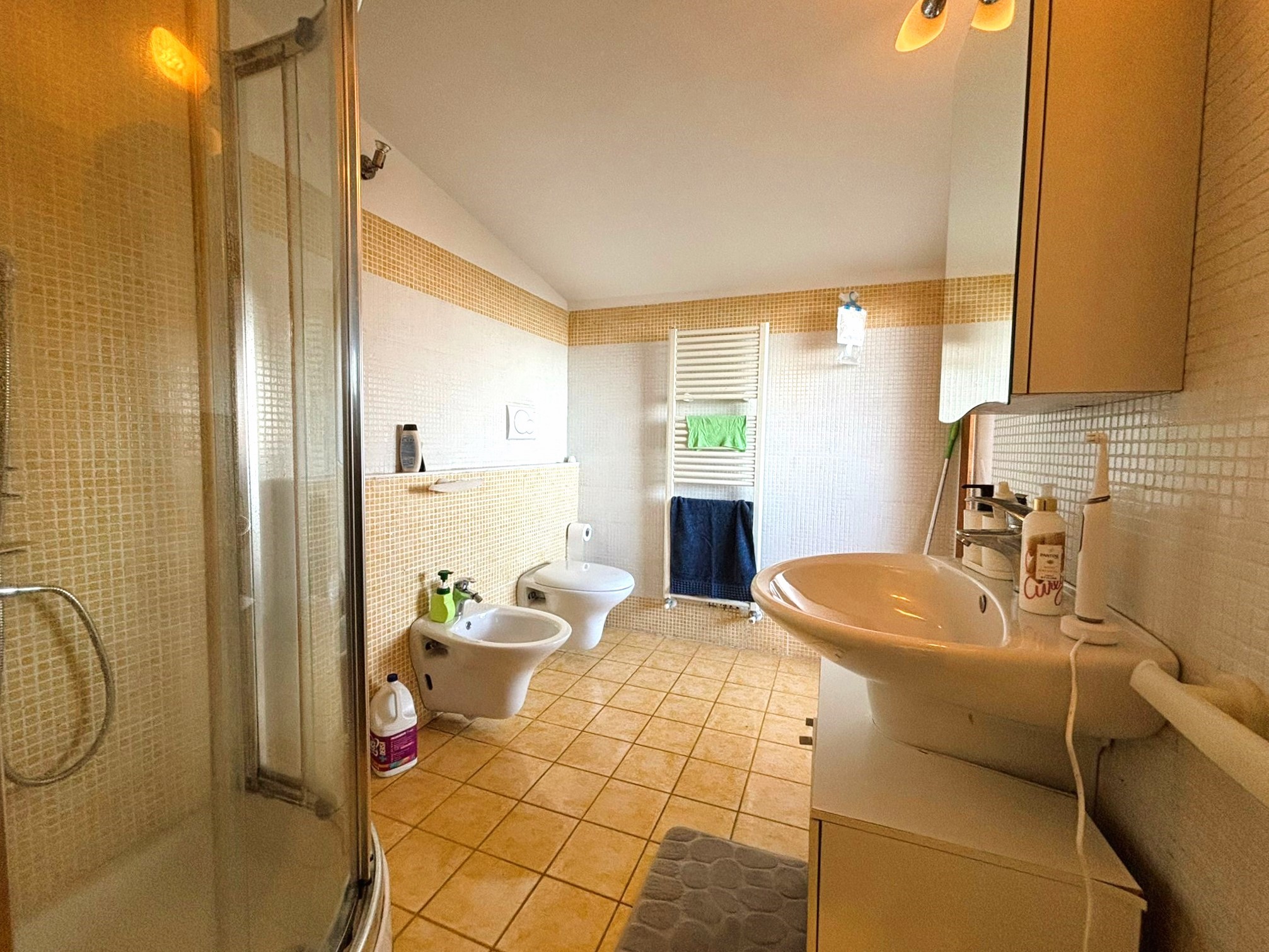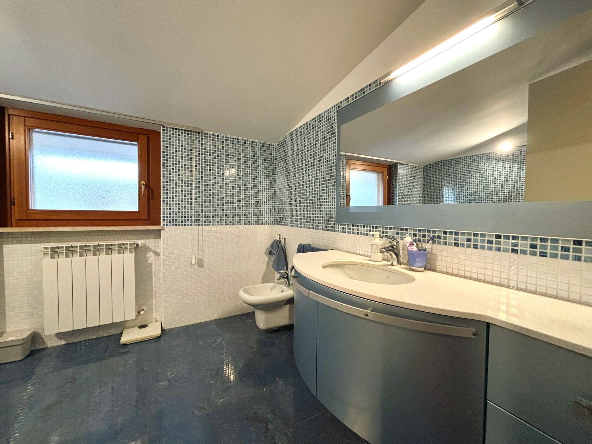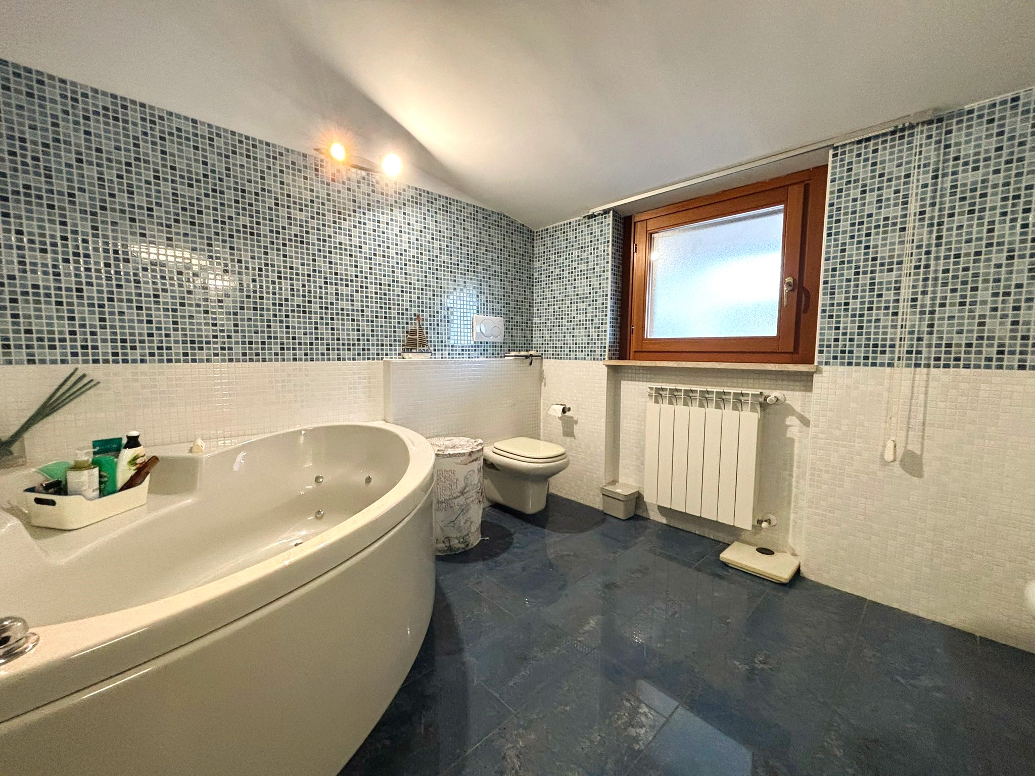 – al secondo piano (sottotetto) da camera matrimoniale con cabina armadio, due camere da letto, due bagni con finestra, ripostiglio e balcone.